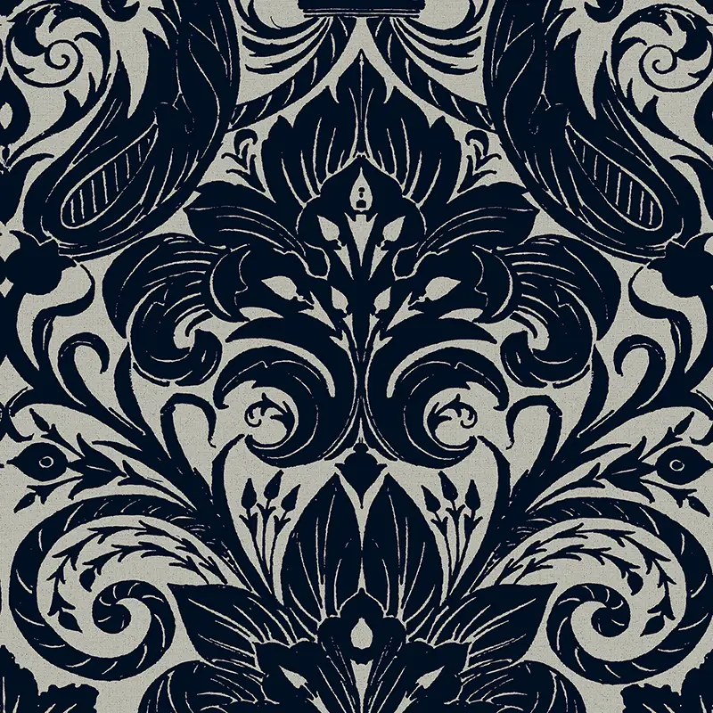 • MÉDAILLON FLORAL BLEU NUIT ET GRÈGE - LB25167