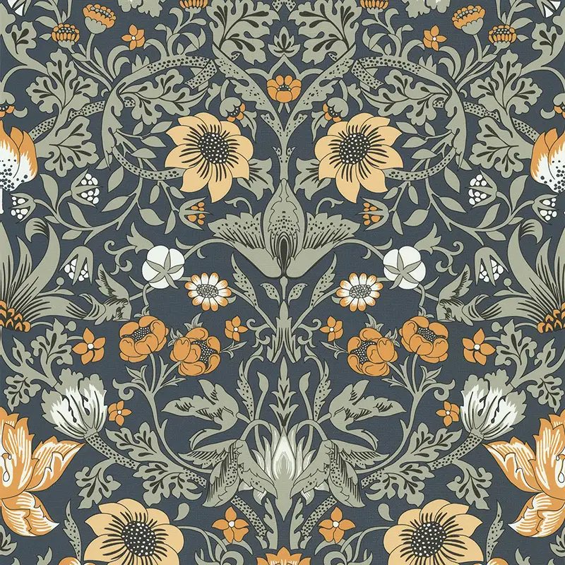 ORNEMENT FLEURI OCRE FOND BLEU FONCÉ - 11250501