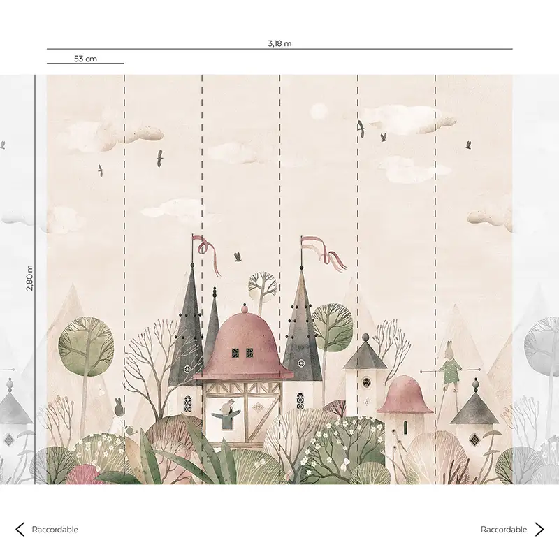 • PANORAMIQUE FAIRYTALE CASTLE BEIGE ET TAUPE 4 LÉS - CW6005-1